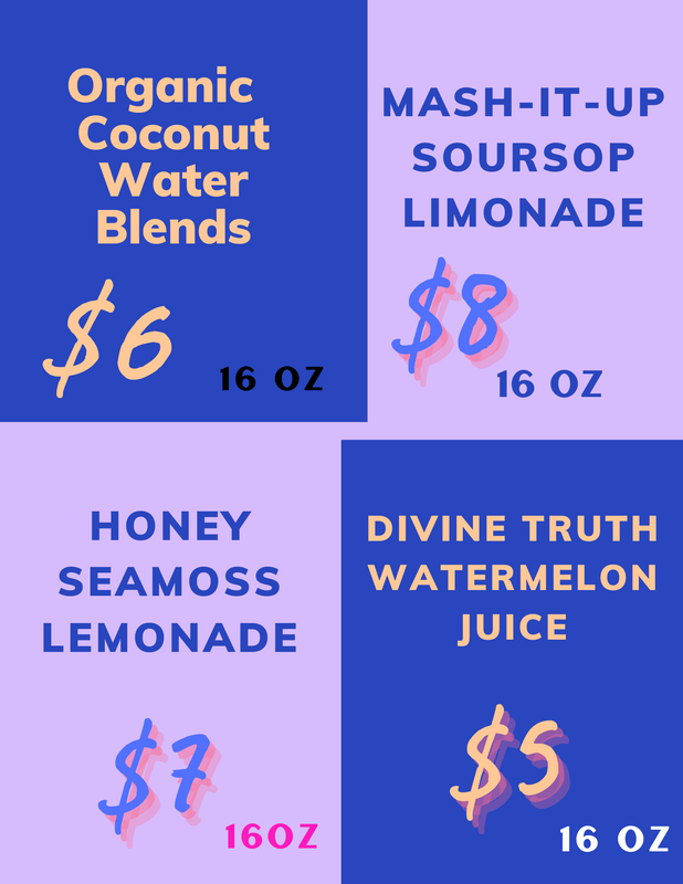 Our Artisanal Smoothie Juices are sourced fresh from Black and Indigenous People of Color where possible. The Divine Truth is focused on inclusion and growth sourcing Pacific Regional suppliers where possible. We source St. Lucia’s best seamoss. and Spring Water is ALWAYS the go-to in our rinsing, soaking, and blending process.